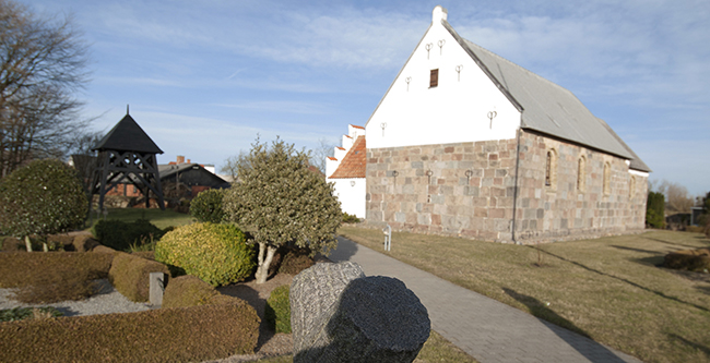 I våbenhusets østmur er indmuret en granitkvader med tovsnoning og indristede ornamenter. Det er uvist, hvad stenens oprindelig funktion har været: gravsten eller karmstykke fra en indgang?