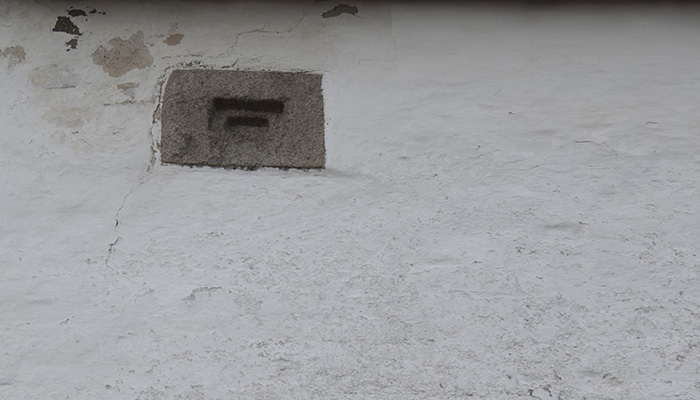 Mange helgengrave er efter Reformationen blevet brugt som bygningsmateriale som her i Em kirkes nordmur.